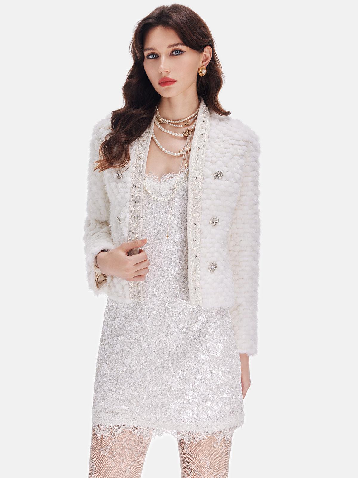 Beyaz Düğme Detaylı İncili Kısa Ceket
