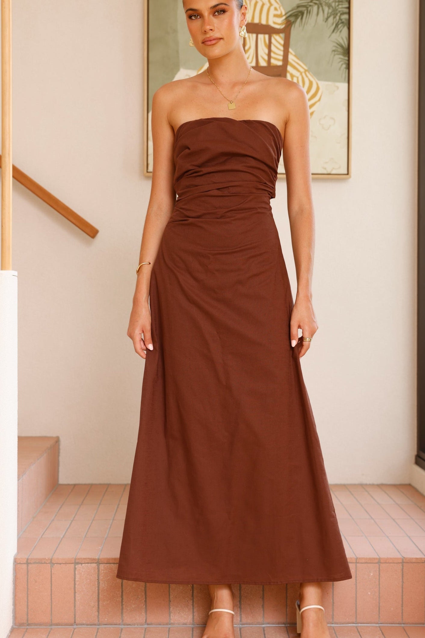 Bolivia Strapless Midi Dress - Chocolate