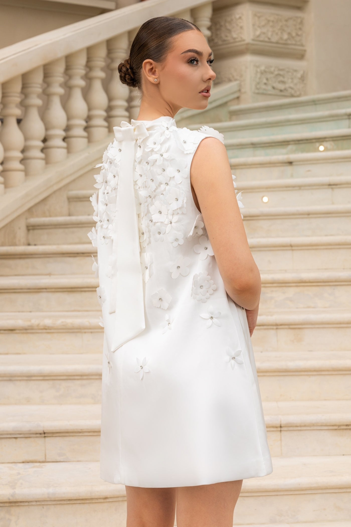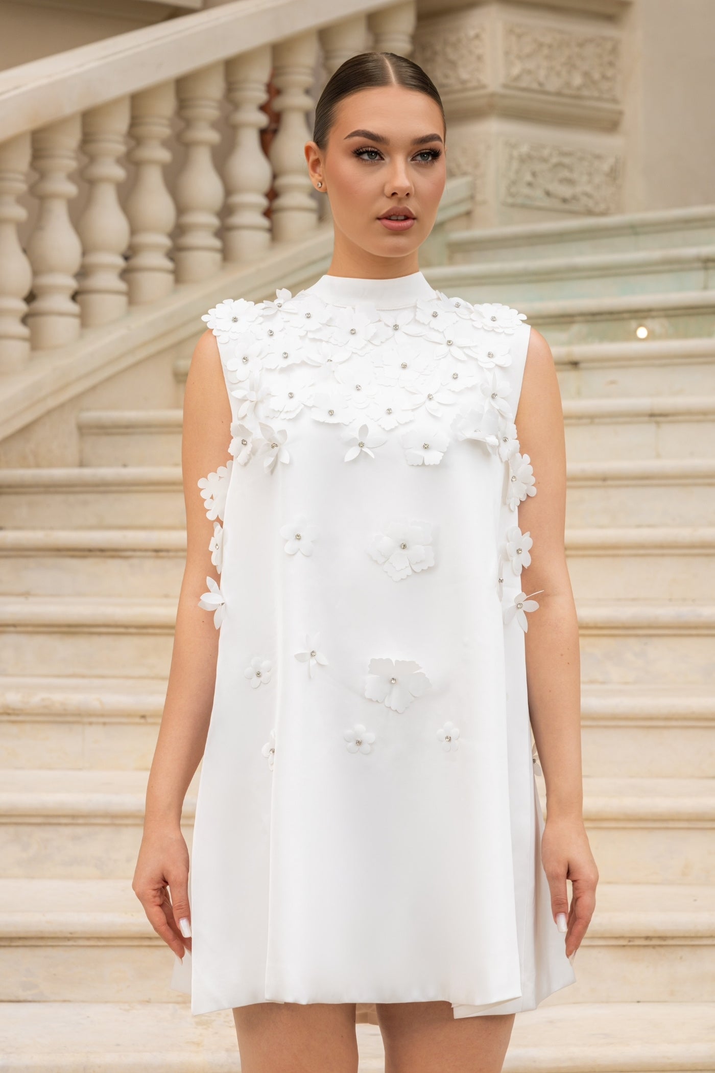 Bol Çiçek Aplikeli Mini Elbise