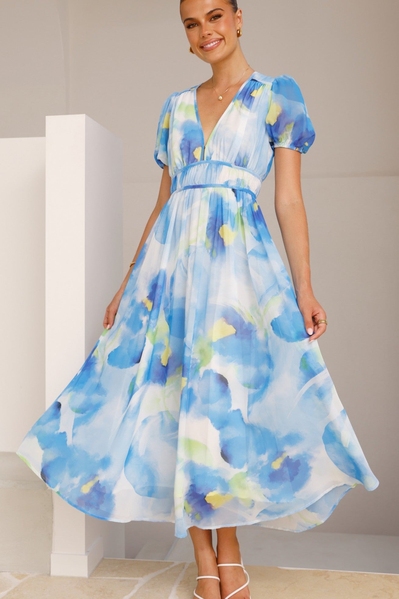 Alva Çiçekli Örme Straplez Uzun Elbise