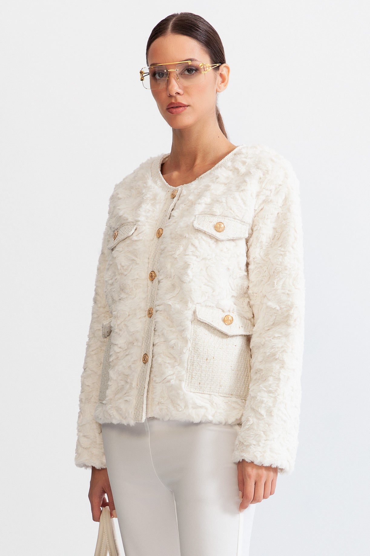 Altın Gül Düğme Detaylı Krem Renk Blazer Ceket