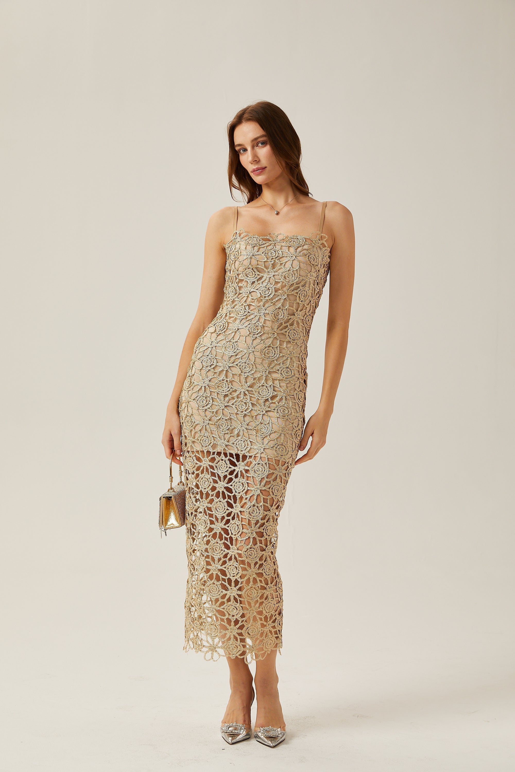 Béatrice Çiçek İşlemeli Kolsuz Midi Elbise