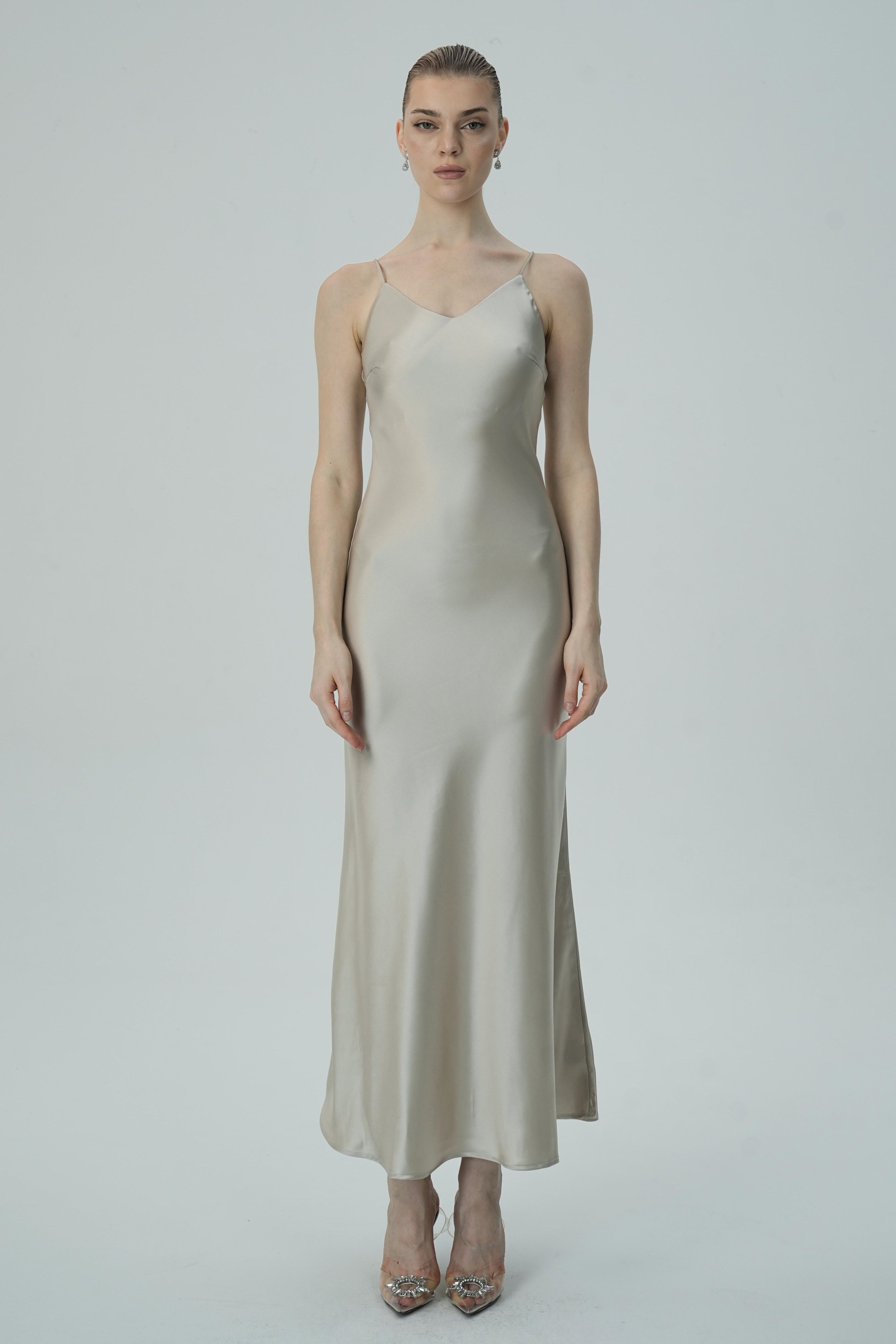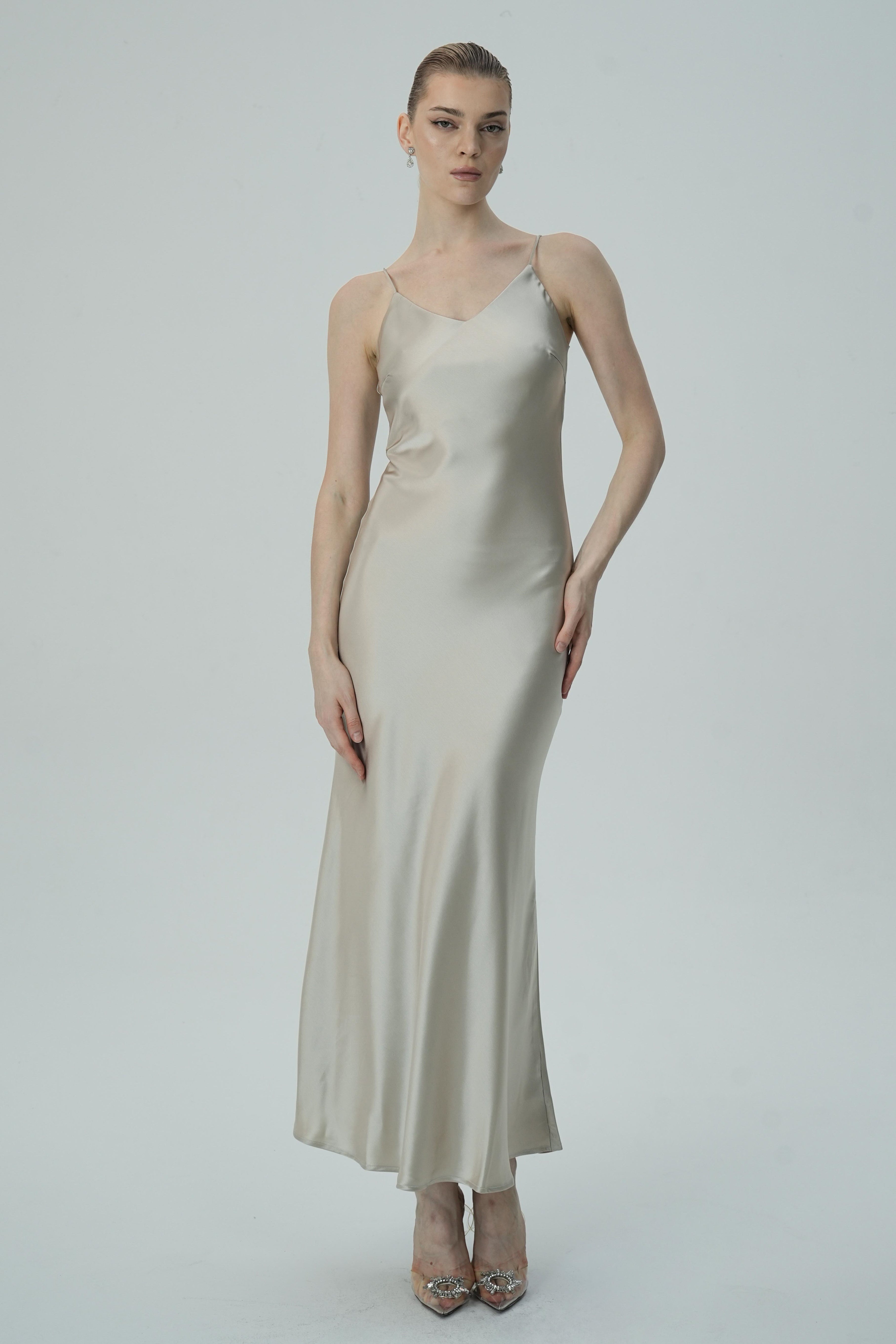 Baskılı V Yaka Kolsuz Uzun Elbise