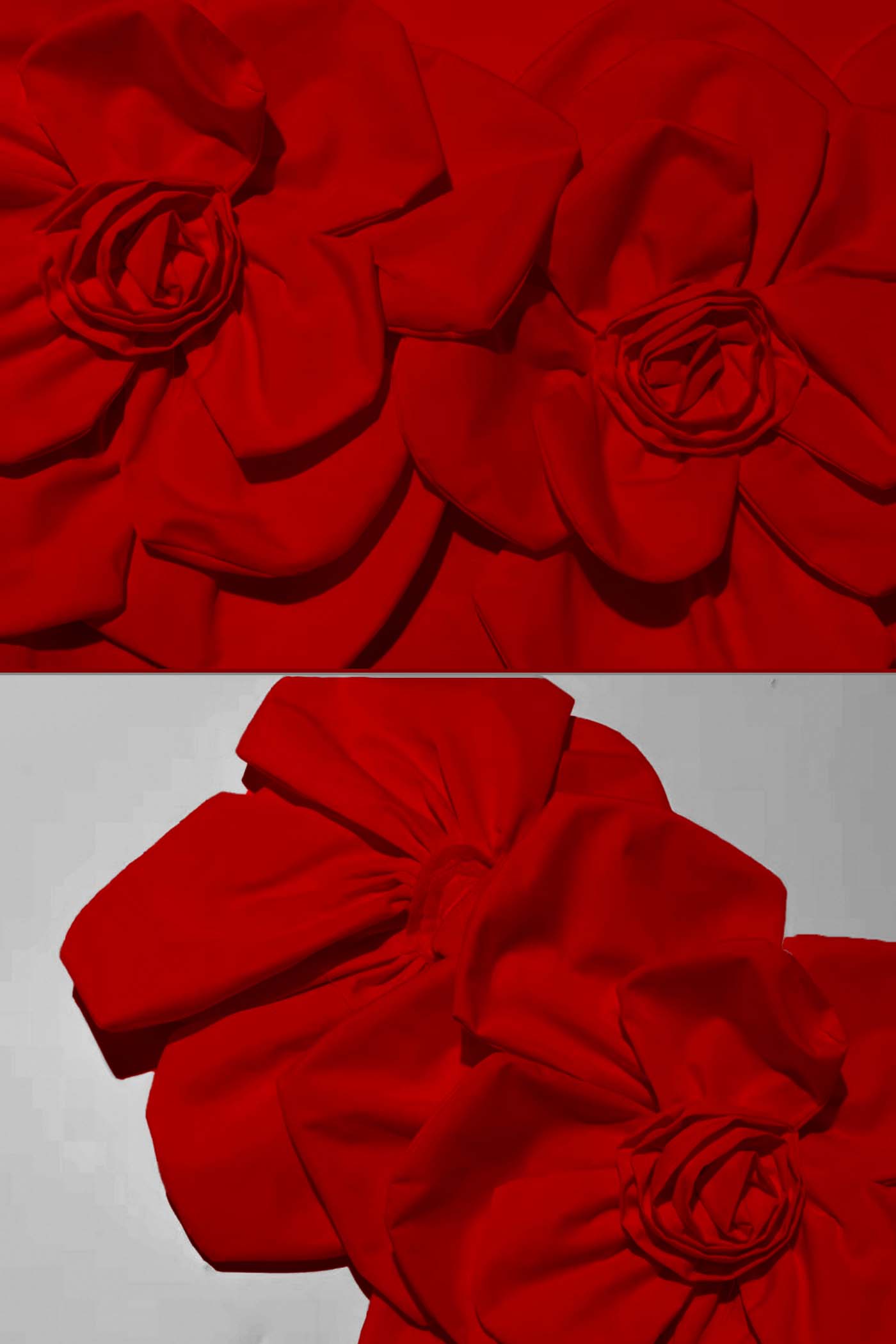 Büyük Kumaş Çiçek Desenli Omuzları Açık Midi Elbise
