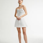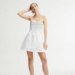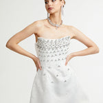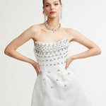 Radiance Elegance Beyaz Taş İşlemeli Straplez Mini Elbise