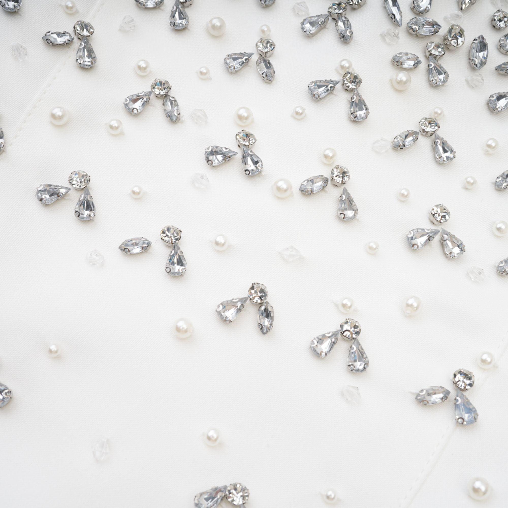 • "Radiance Elegance" mini elbise, zarif taş işlemeleriyle ışıltı ve şıklığı bir araya getiriyor. Straplez tasarımı ve ince detayları, özel günler ve unutulmaz anlar için kusursuz bir seçim. Göz alıcı bir stil yaratın!