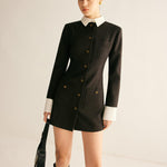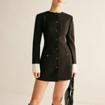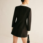 Siyah ve Beyaz Kontrast Detaylı Mini Blazer Elbise