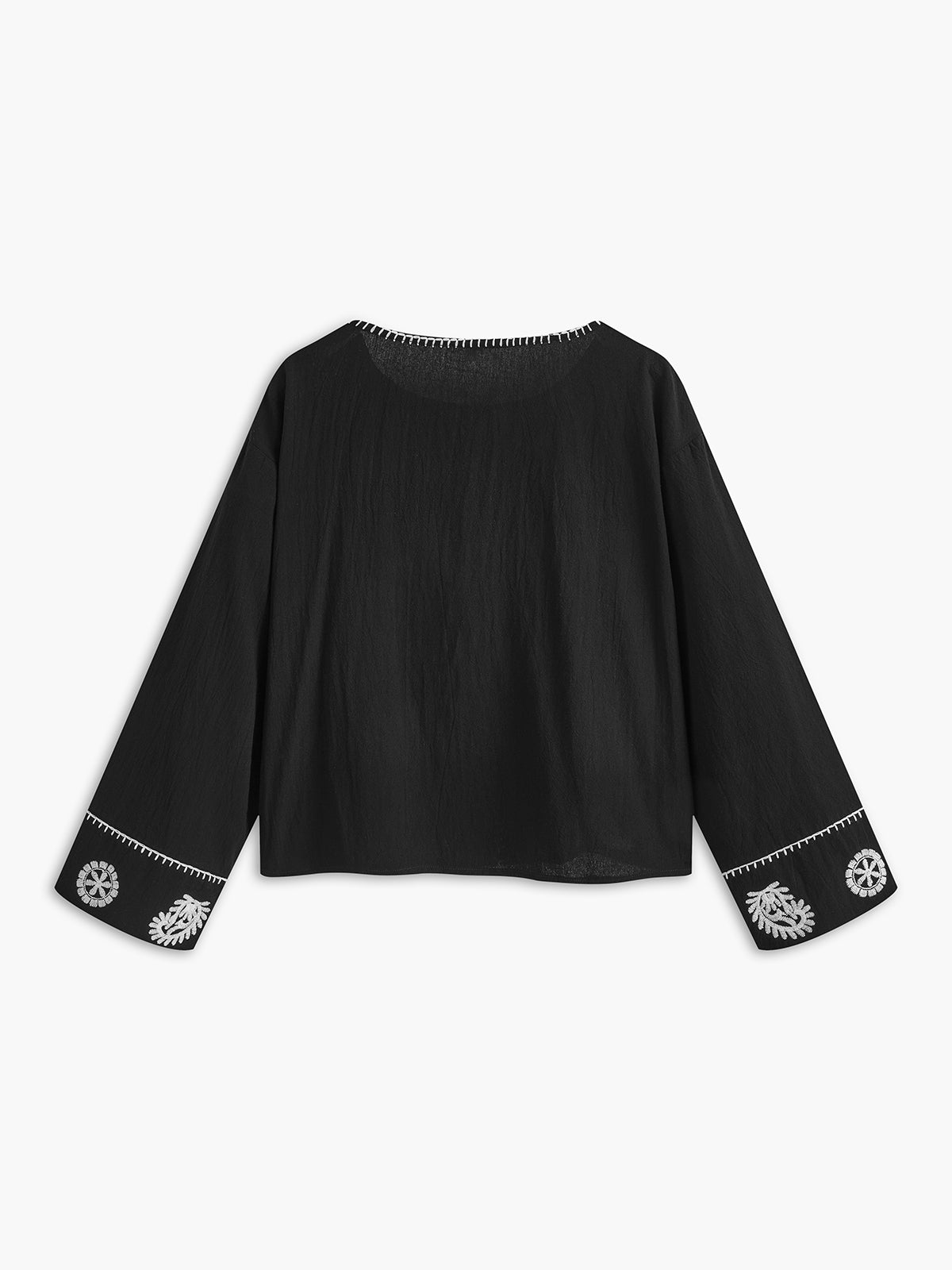 Nakış Detaylı Uzun Kollu Pamuklu Bluz
