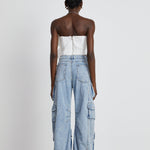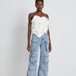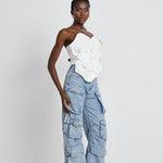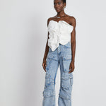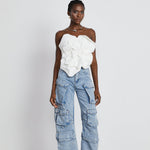 • Zarafeti ve modern tasarımı bir araya getiren bu beyaz straplez bluz, büyük 3D çiçek detayıyla dikkat çekiyor. Hem şık davetlerde hem de günlük stilinize sofistike bir dokunuş katmak için ideal. Jean ya da eteklerle kolayca kombinlenebilen bu parça, tarzınızı bir üst seviyeye taşıyacak.
