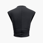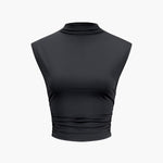 Minimal Siyah Yüksek Yaka Crop Bluz