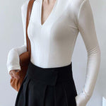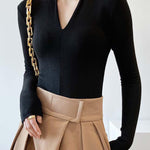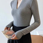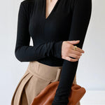 Siyah V Yaka Uzun Kollu Triko Bluz