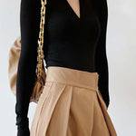 Zamansız tasarımı ve derin V yaka detayıyla dikkat çeken bu siyah triko bluz, şık ve sofistike kombinler için ideal bir parça. Hem günlük hem de özel davetlerde zarafetinizi ön plana çıkarır!