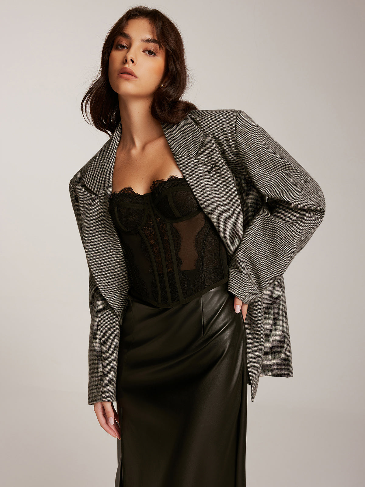 Kontrast Dikiş Detaylı Dantel Kısa Üst