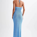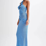 Boyundan Bağlamalı Tığ Çiçek Aplikeli Balık Kuyruğu Maxi Elbise ile şıklığı kucaklayın. Boyundan bağlı şık bir tasarıma ve karmaşık tığ işi çiçek aplikesine sahip bu triko elbise, yüksek esnekliğe sahip kumaşı ve balık kuyruğu etek şekliyle mükemmel bir uyum sunuyor. Herhangi bir resmi etkinlik veya özel gün için mükemmel olan bu model, konforu şıklıkla birleştirir.