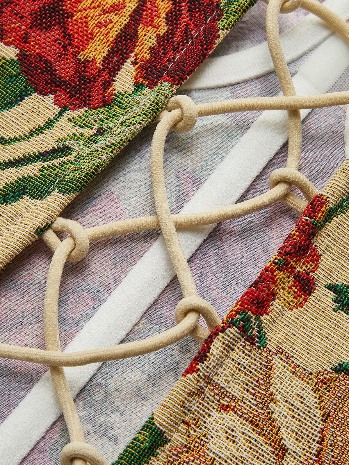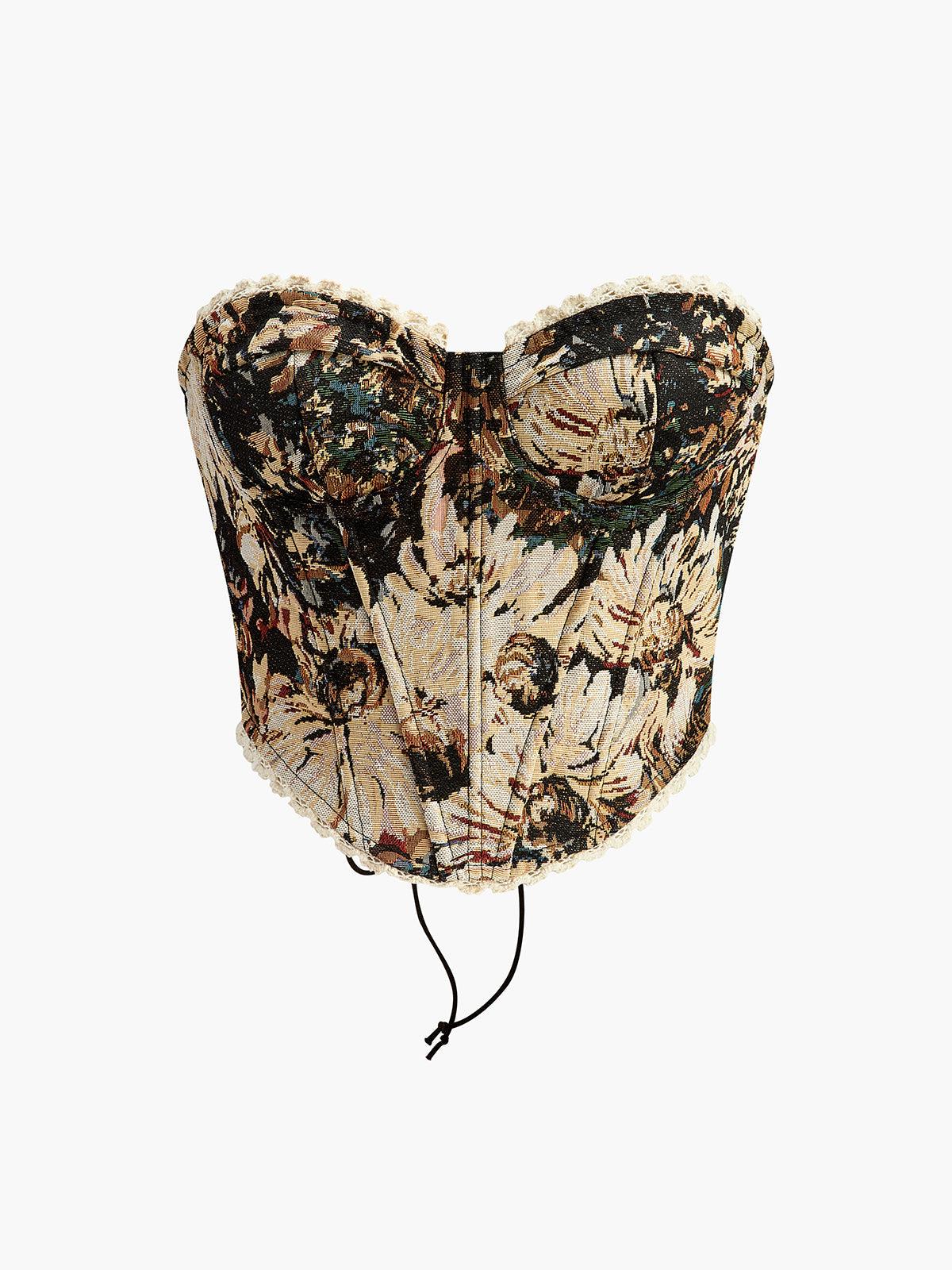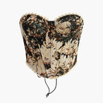 Canlı çiçek desenleri ve zarif tasarımıyla romantik bir hava sunan bu straplez korset, özel günlerde şıklığınızı ön plana çıkarmak için ideal bir seçim. Feminen bir tarz için mükemmel bir tamamlayıcı!
