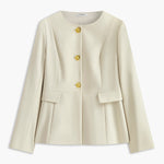 Şık Yuvarlak Yaka Blazer, Zarif Kamelya Düğmeleriyle
