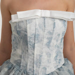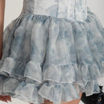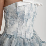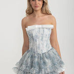 Kat Kat Şeffaf Etekli ve Pastel Çiçek Desenli Zarif Korse Mini Elbise - Beyaz/Mavi