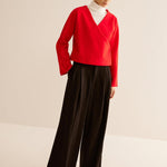 Scarlet Wrap Blouse’u siyah yüksek bel pantolon ve stiletto ayakkabılarla tamamlayarak sofistike bir akşam görünümü elde edebilirsiniz. Günlük kullanım için ise jean ve beyaz spor ayakkabılarla rahat bir şıklık yakalayabilirsiniz. Altın aksesuarlarla kırmızı tonun zarafetini ön plana çıkarabilirsiniz.
