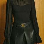 Şifon Pileli Kravat Yaka Panel Gömlek
