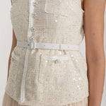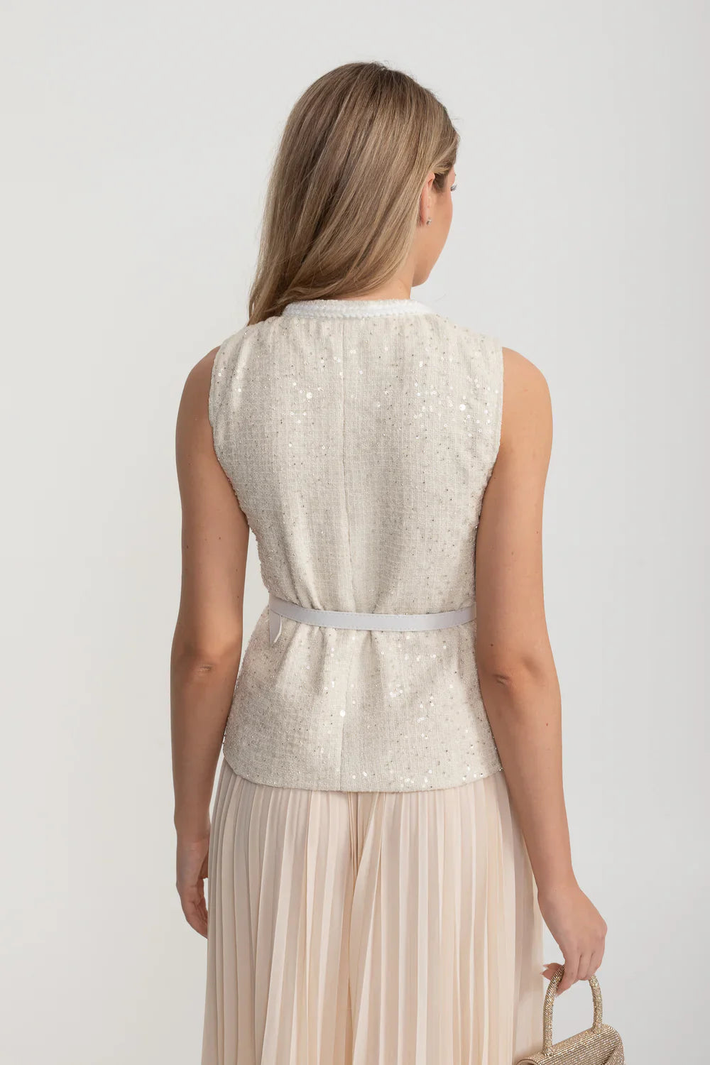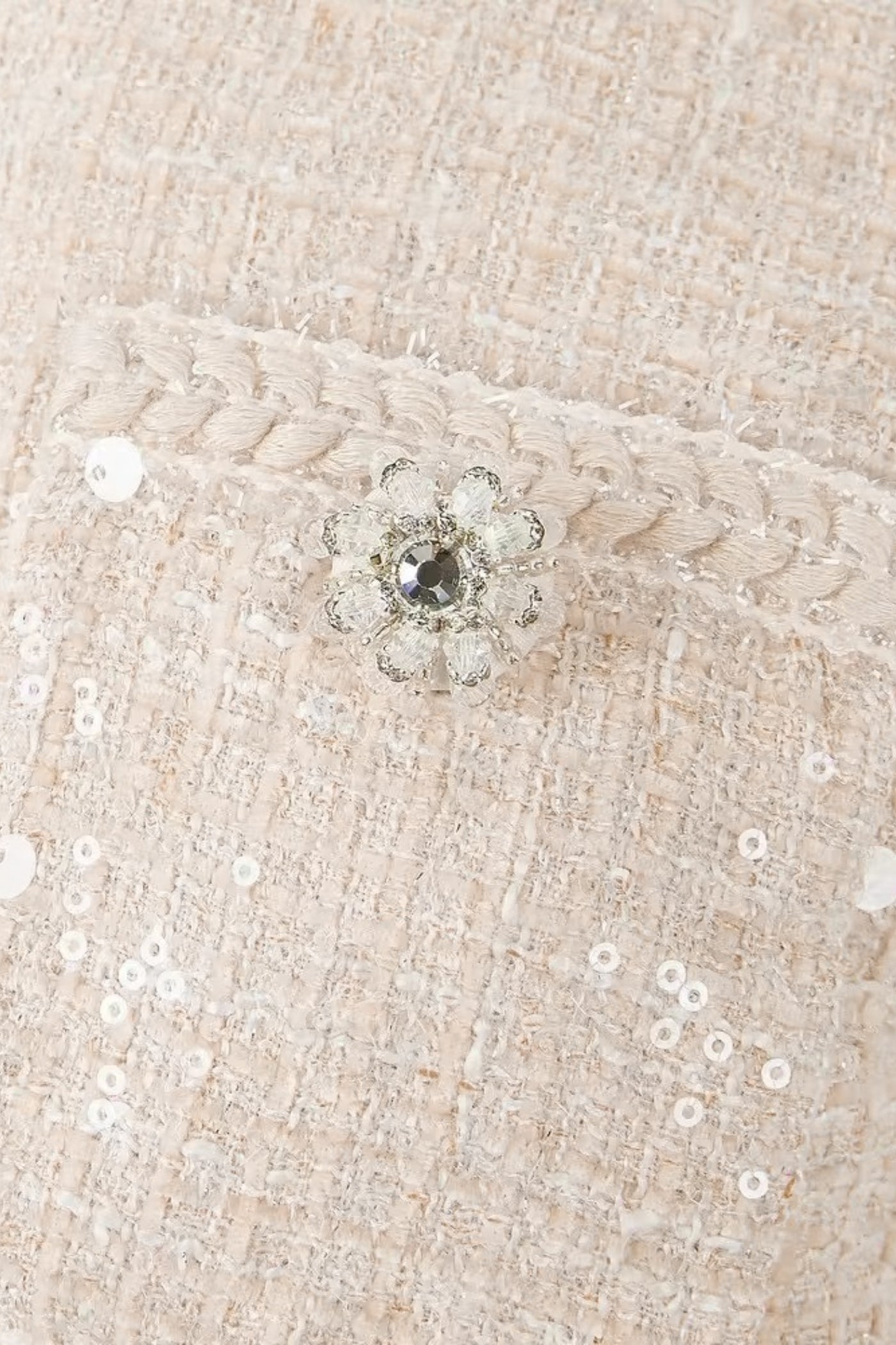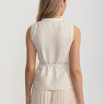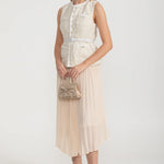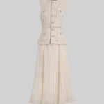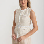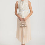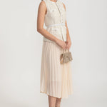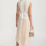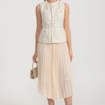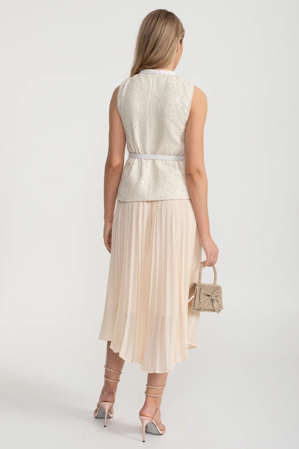 Önden Cepli ve Şeffaf Pileli Etekli Ivoire Dokulu Co-Ord