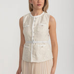 Önden Cepli ve Şeffaf Pileli Etekli Dokulu Co-Ord - Ivoire