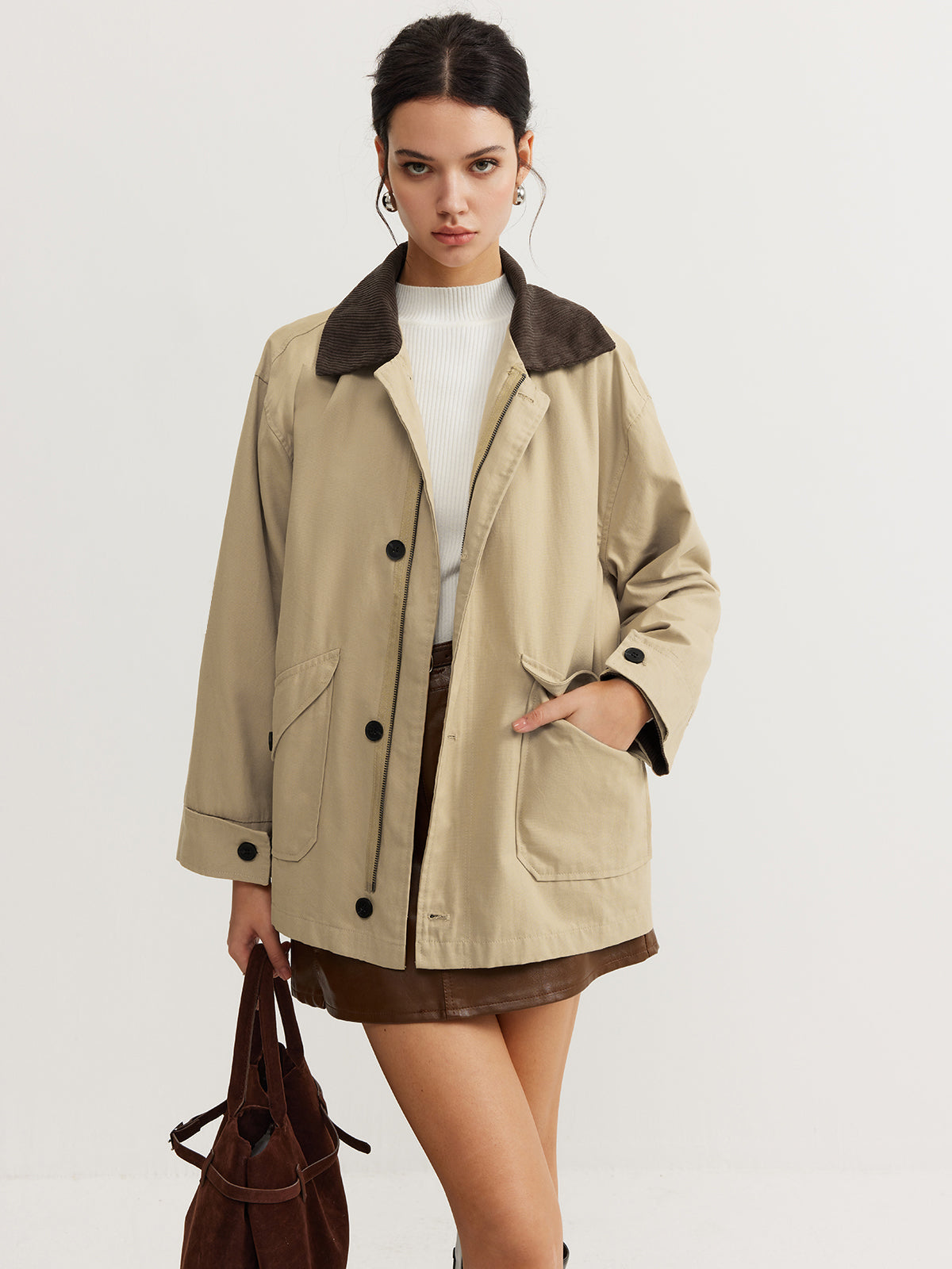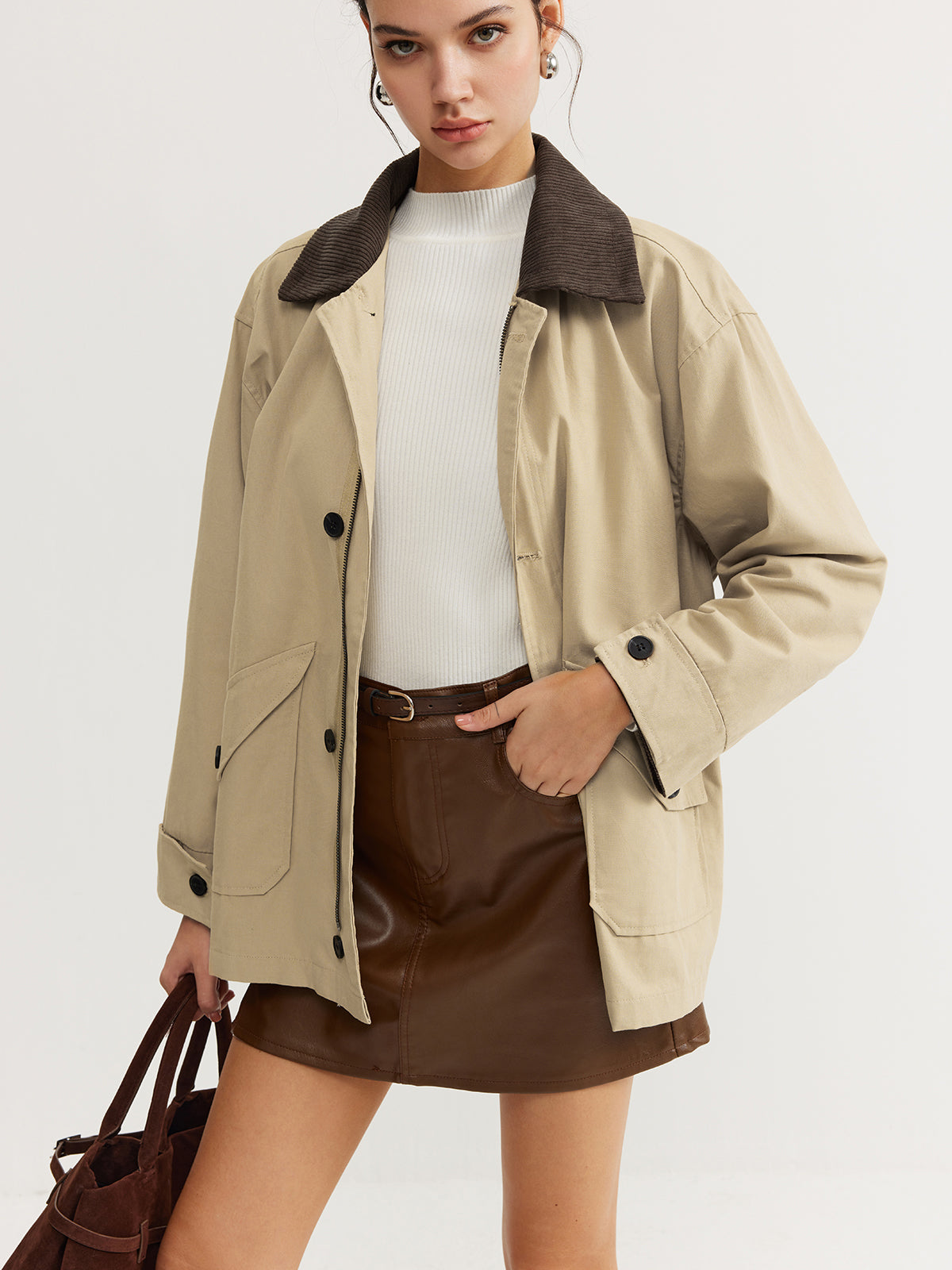 Kontrast Yaka Fermuarlı Kargo Ceket