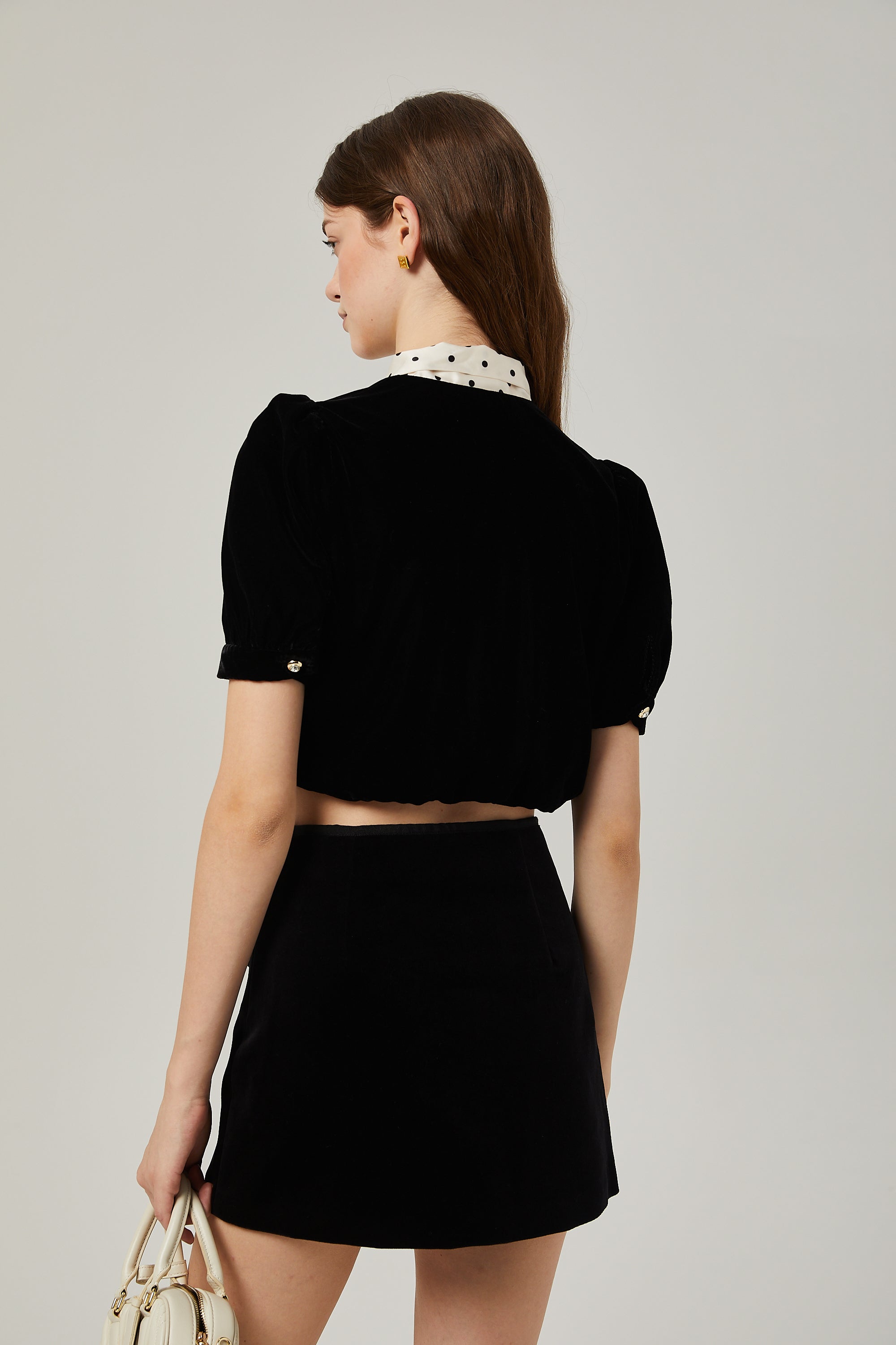 Sofistike Siyah Pullu Beyaz Pileli Maksi Etek