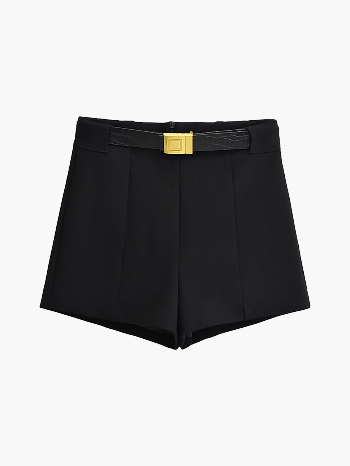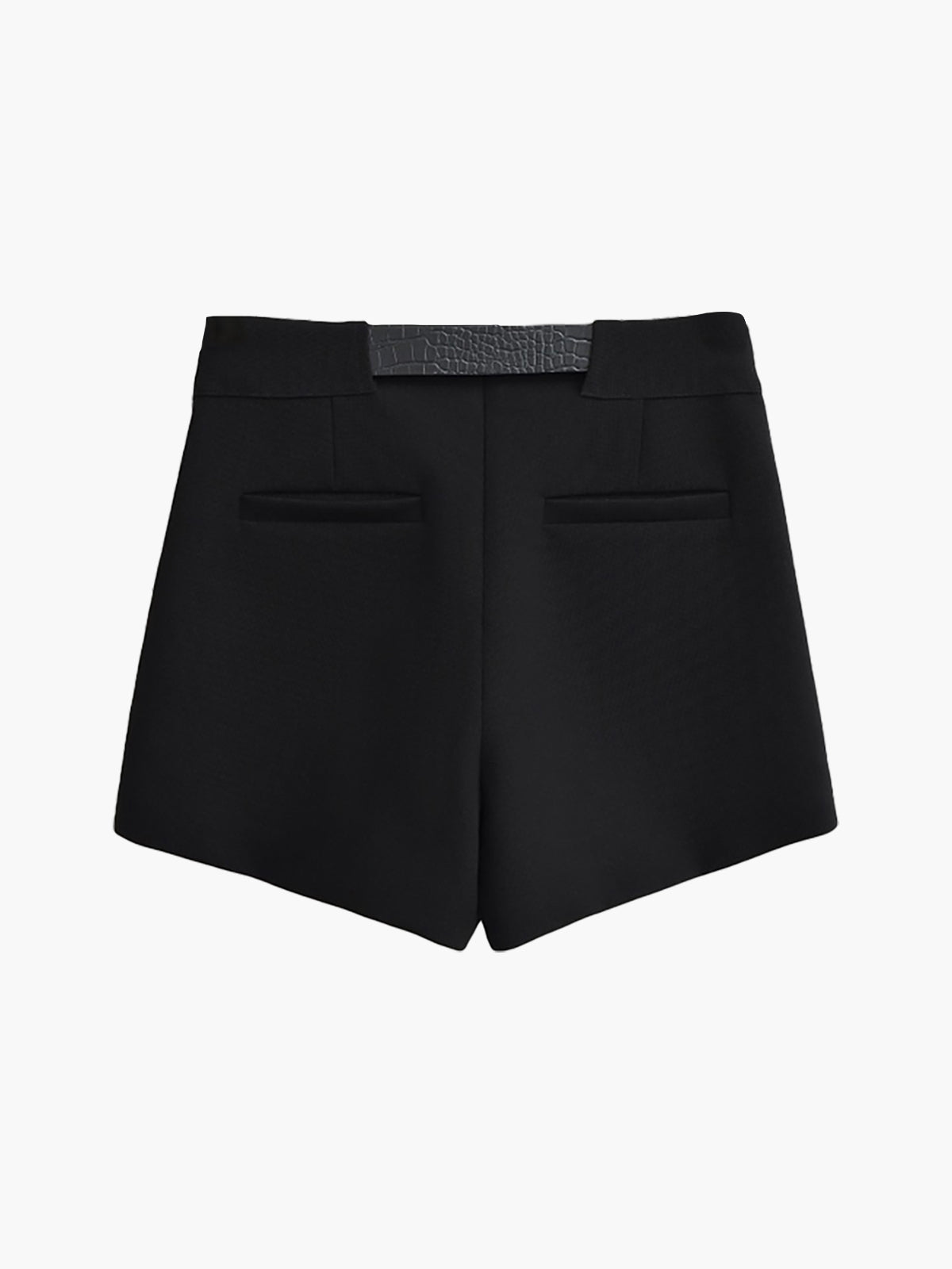 Şık Orta Bel Fermuarlı Şort Etek ve Şık Kemer Tasarımı