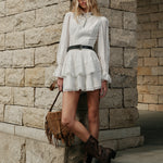👗 Büyüleyici Stil: Zarif volanlarla süslenmiş romantik vintage tasarımı, şıklık ve cazibe katıyor; düğünler ve tatiller için mükemmel hale getiriyor.