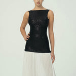 Sofistike Siyah Pullu Beyaz Pileli Maksi Etek