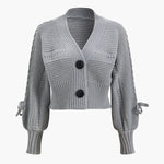 Buttoned Ribbed Knit Cropped Hırka