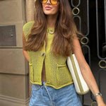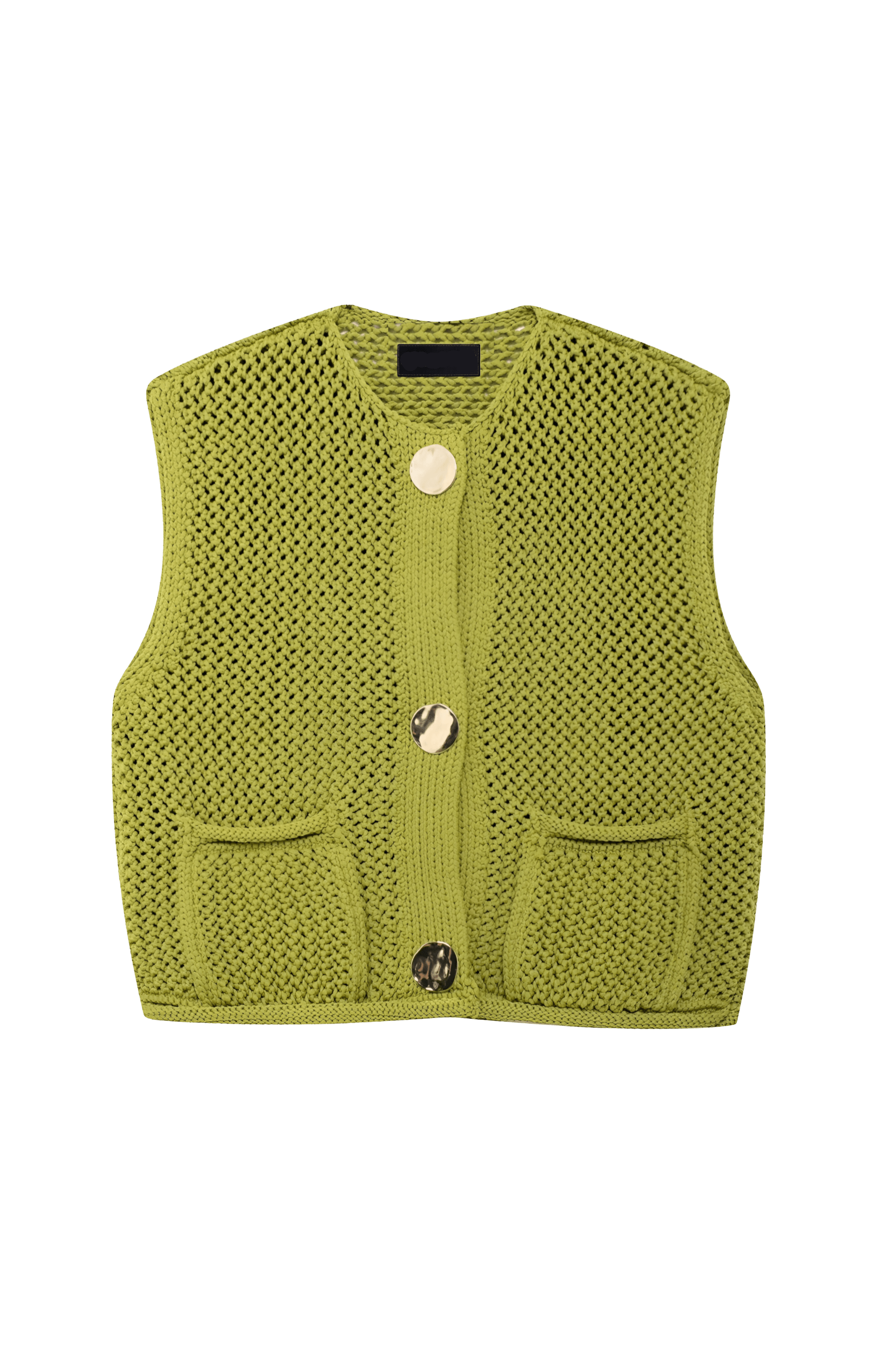 Önü açık şık tasarıma ve klasik yuvarlak yakaya sahip bu tığ işi dantel yelekle gardırobunuzu yükseltin. Narin dantel deseni rahat, örme kumaşa sofistike bir dokunuş katarak onu hem şık hem de konforlu hale getiriyor.