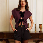 Fiyonk Dekorlu Yırtmaçlı Kazak Yelek