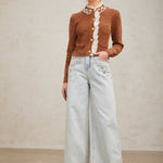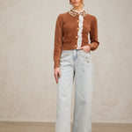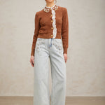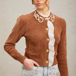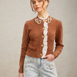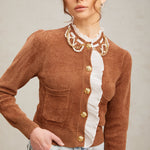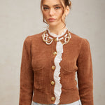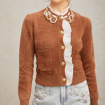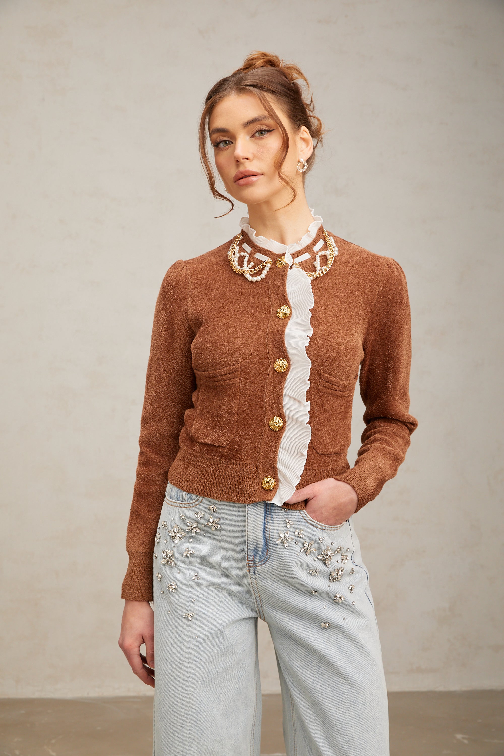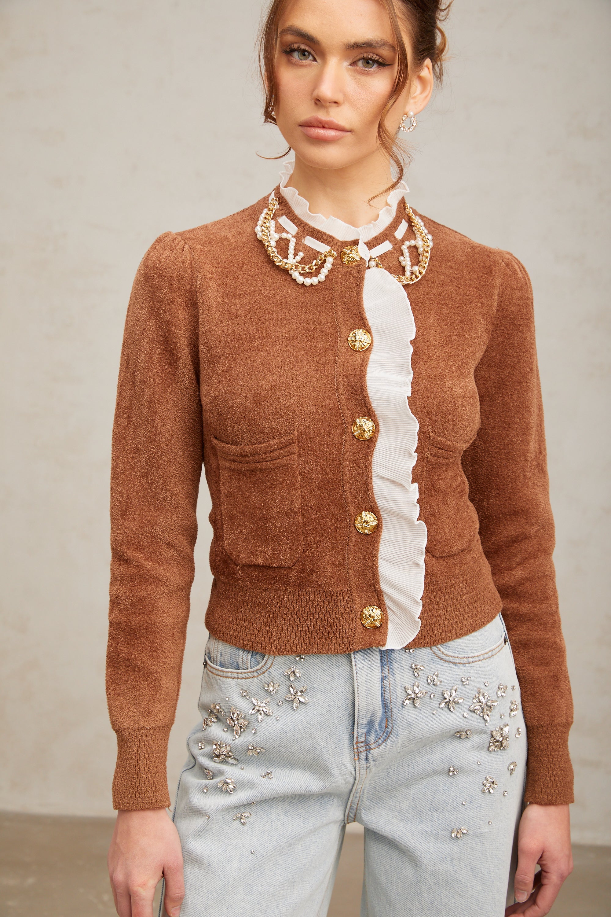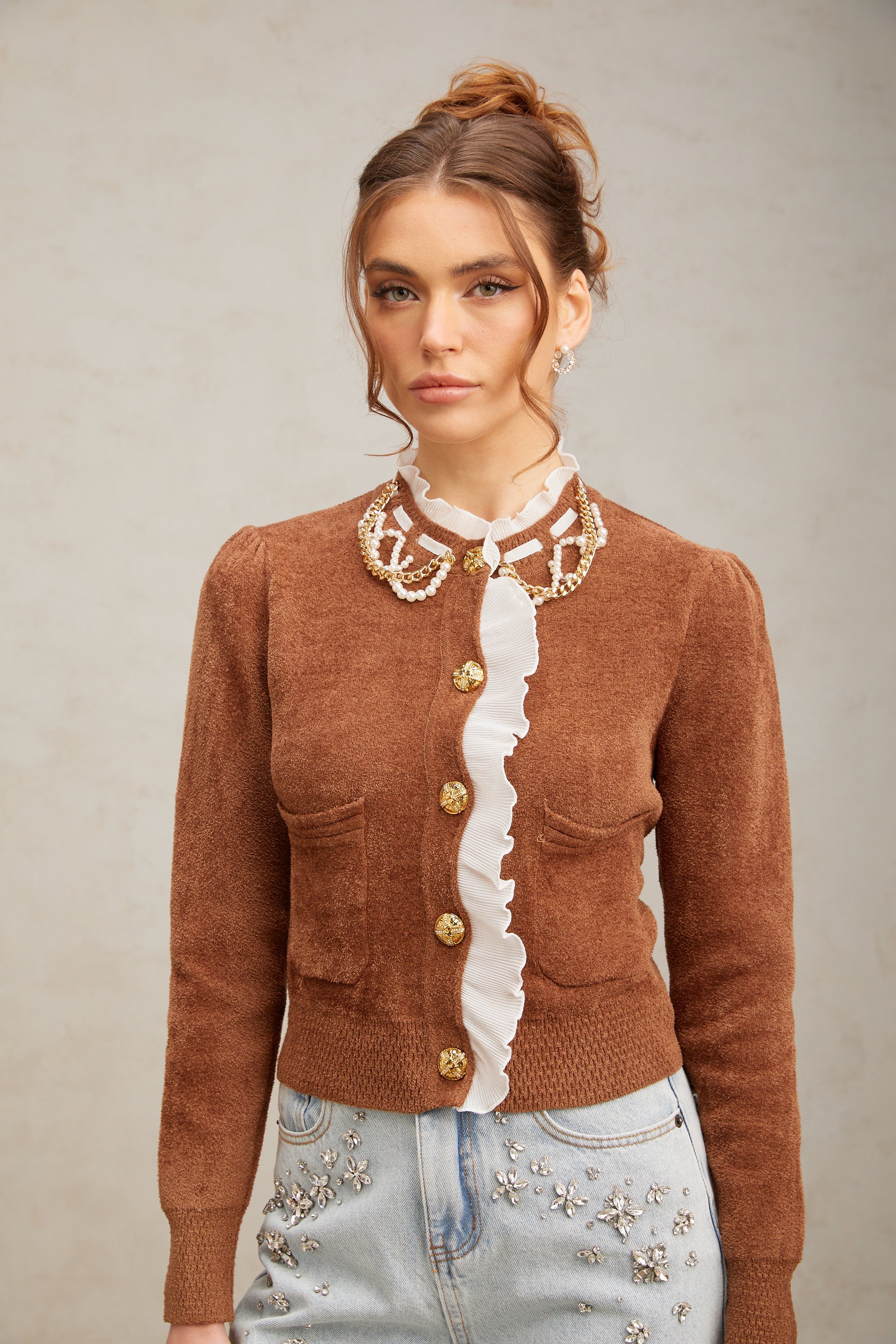 Taş İşlemeli Fırfırlı Örgü Hırka
