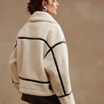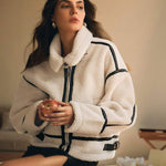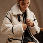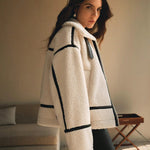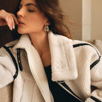 Sıcacık ve şık bir görünüme kavuşun:  Suni Kürk Detaylı Ceket. Yumuşacık teddy kumaşı ve kontrast şerit detaylarıyla öne çıkan bu ceket; yapılandırılmış yakası, oversize kolları ve tokalı fermuar tasarımıyla modern bir lüks konfor sunar.