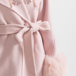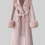 Kürk Manşetli ve 3D Çiçek İşlemeli Kaban