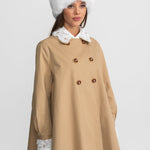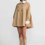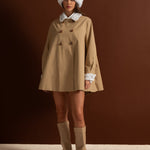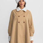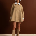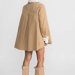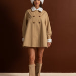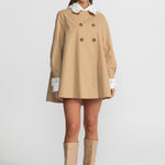 Nakış Detaylı Yakalı A Form Mini Trençkot Elbise – Camel