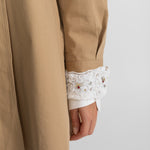 • Nakış Detaylı Yakalı A Form Mini Trençkot Elbise – Camel