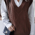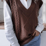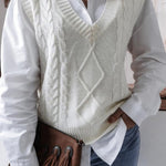 Düz Renk Geometrik Kazak Yelek