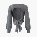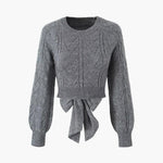 Gri Bağlama Detaylı Triko Kazak