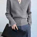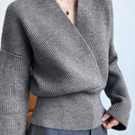 Minimal tasarımı ve kuşak detaylı bel vurgusuyla öne çıkan bu gri triko kazak, zarif bir stil için mükemmel bir tercih. Hem iş kombinlerinize hem de günlük stilinize sofistike bir dokunuş katın!
