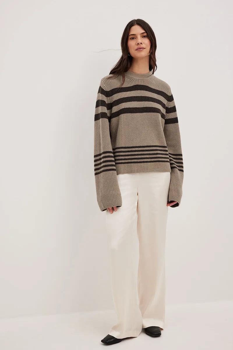 Sonbahar ve kış gardırobunuz için gündelik stil ve rahat konforun mükemmel karışımı olan Lauren Sweater ile tanışın. Bu bol kesim, uzun kollu jarse kazak, kıyafetinize zamansız bir dokunuş katan klasik çizgili desene sahiptir. Sıfır yakası ve normal kolları ile hem sıcaklık hem de zahmetsiz bir tarz sunuyor.