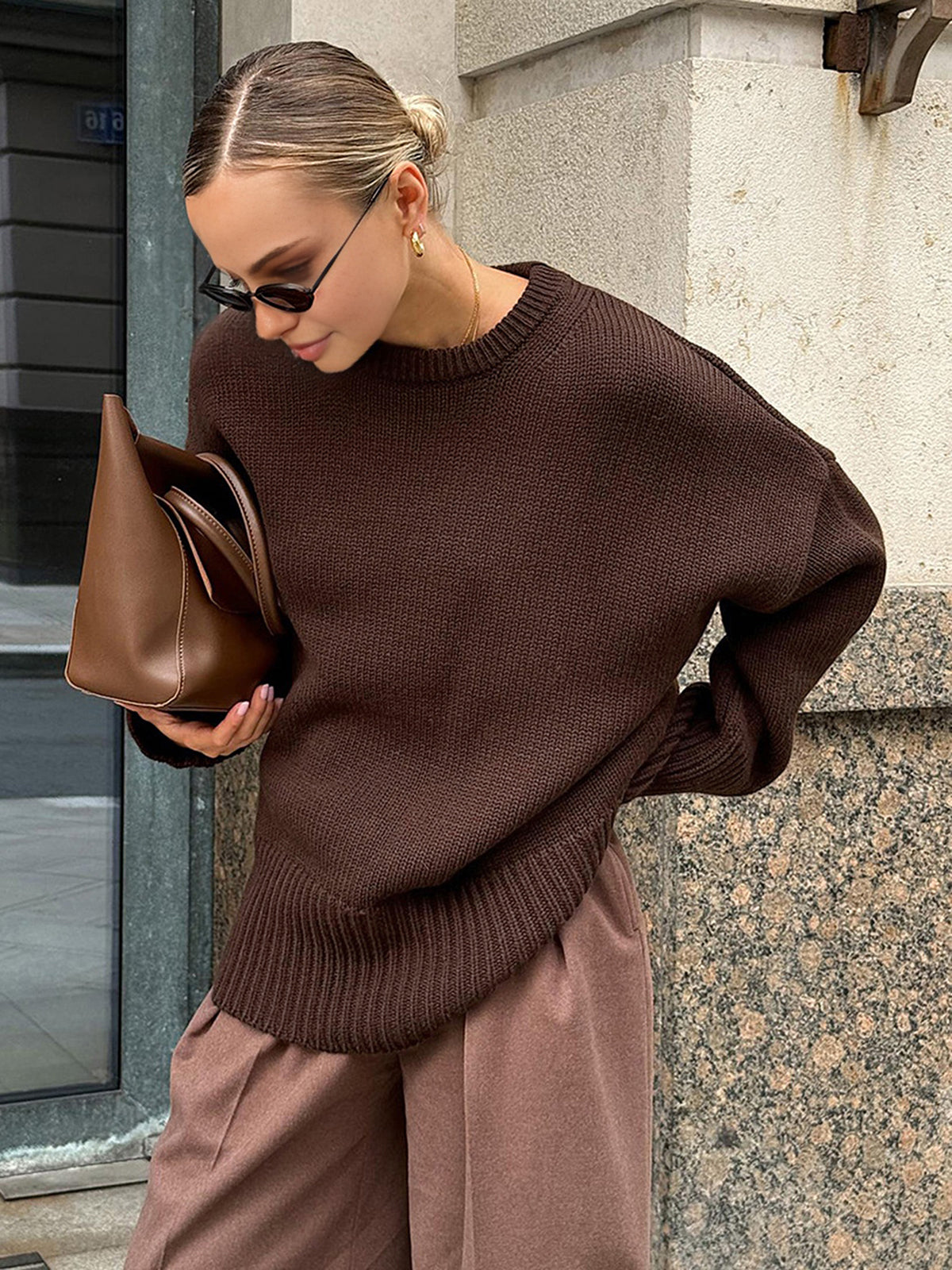 Minimalist Düz Vardiyalı Kazak