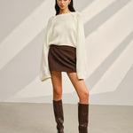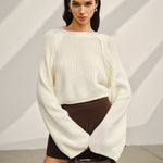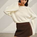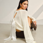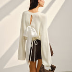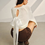 Saten Fiyonklu Çan Kollu Kısa Kazak