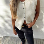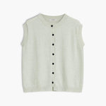 Rahat ve şık bir görünüm sunan bu krem triko yelek, düğme detaylarıyla modern bir hava katıyor. Katmanlı kombinler ve günlük stiller için mükemmel bir tamamlayıcı parça!