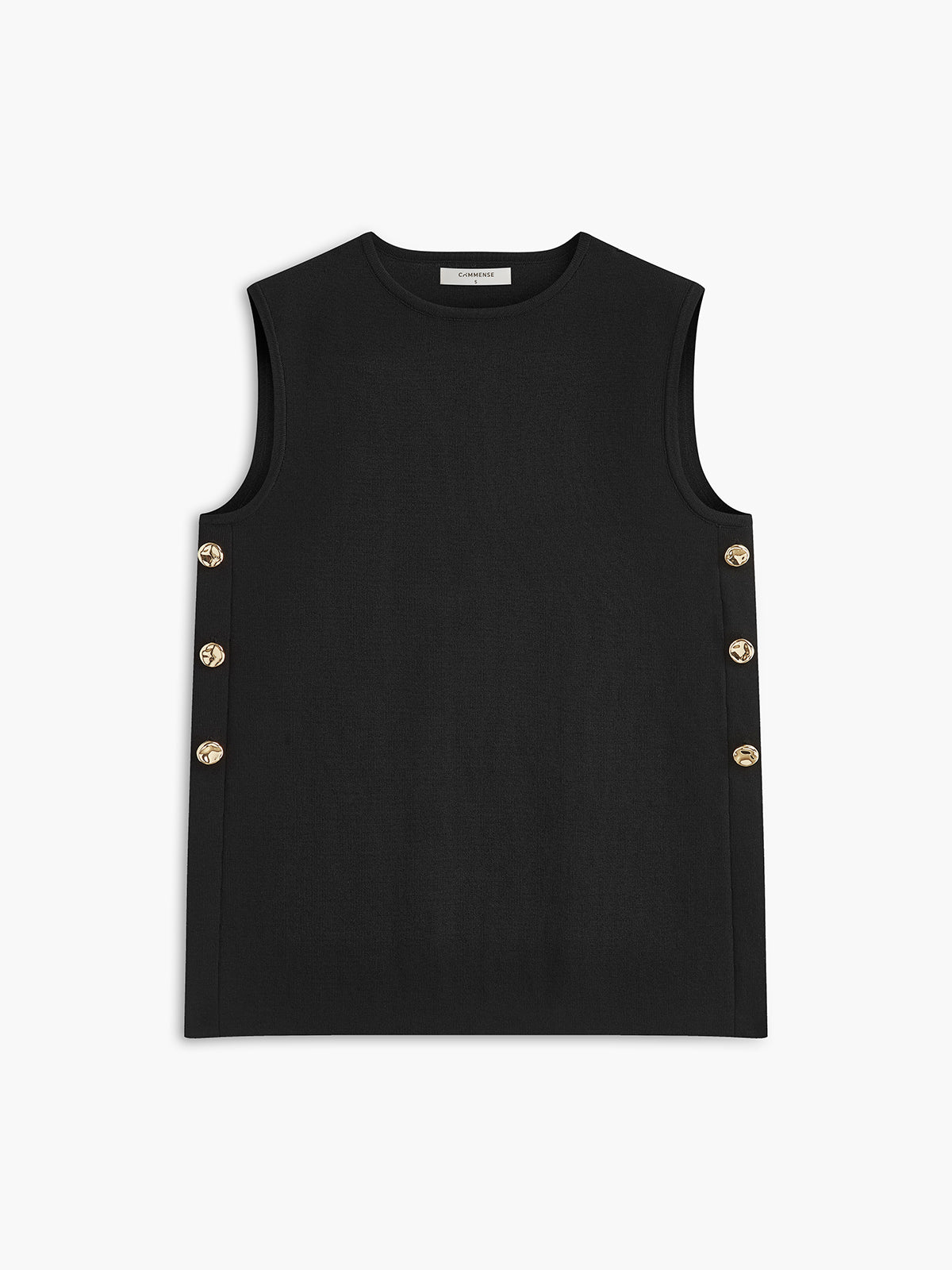 Eşsiz Tasarım: Metal düğmeleri ile bu örgü üst, her kıyafete bir dokunuş zarafet ve ayrımcılık katar.
