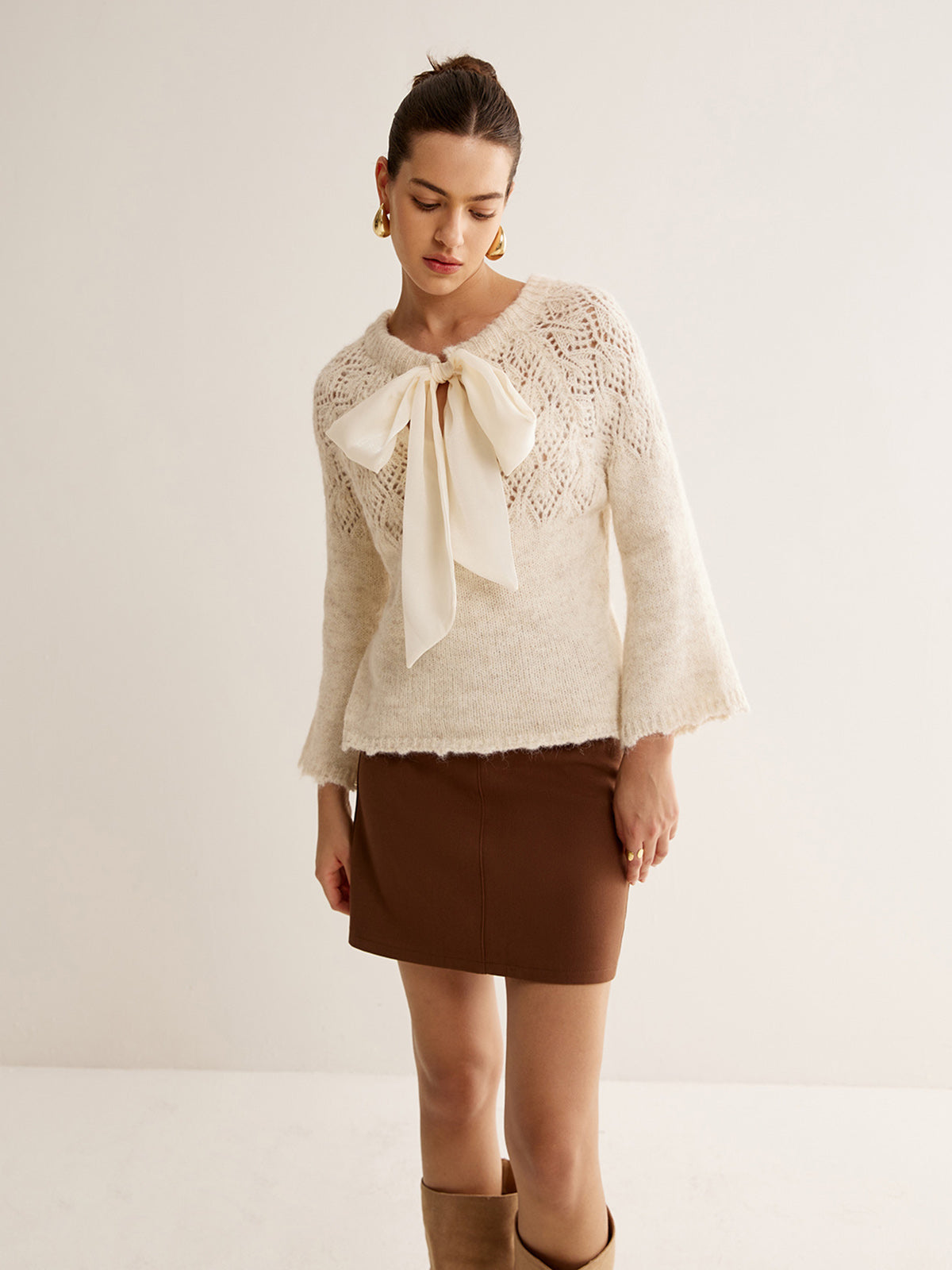 Yün Karışımlı Kontrast Biye Nervürlü Örgü Üst