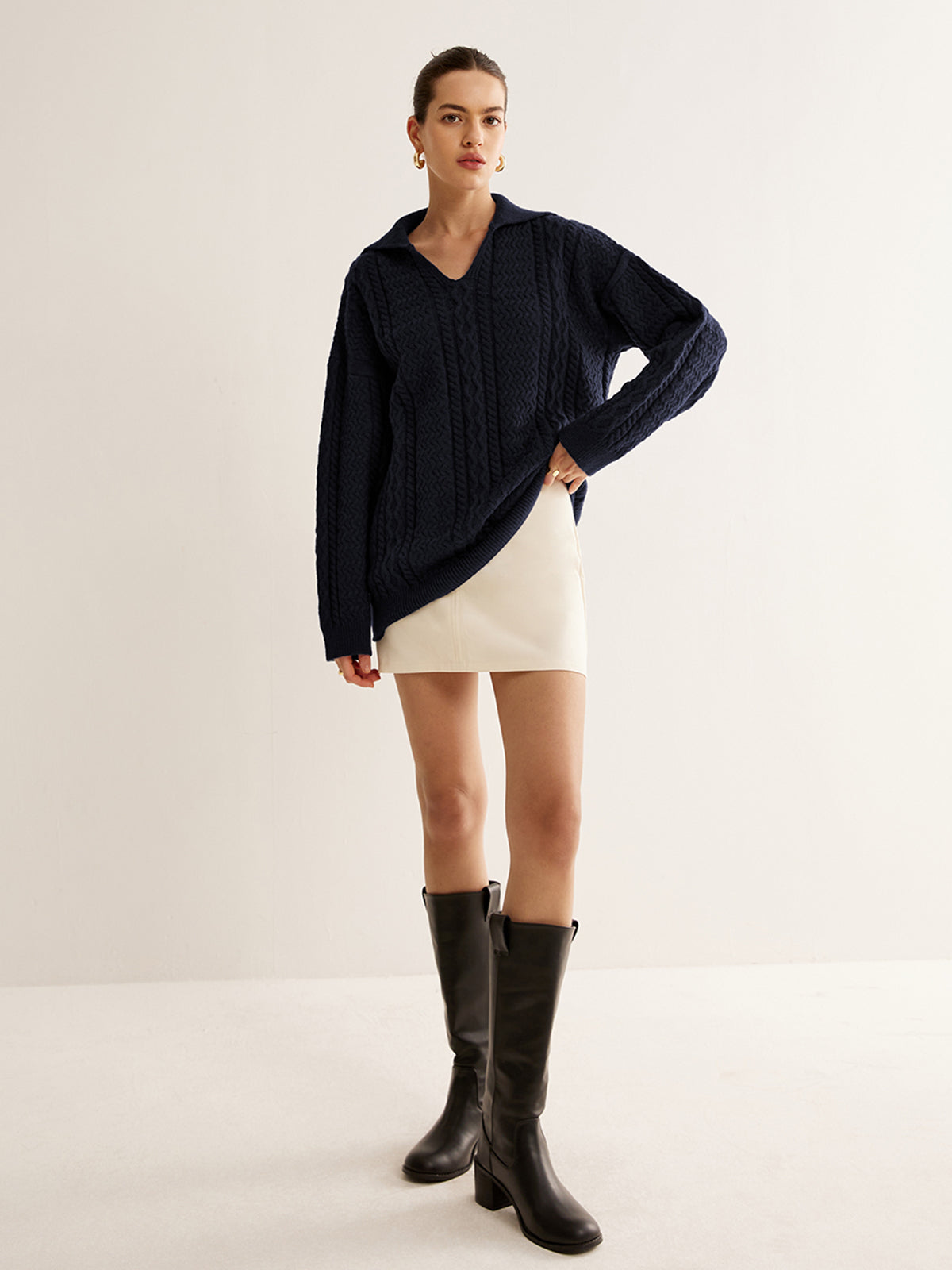 Günlük Bisiklet Yaka Kablo Örgü Üst
