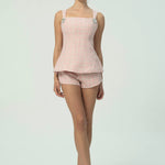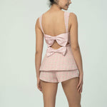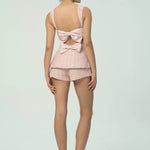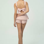 Çift Fiyonk Sırt Detaylı Zarif Pembe Tüvit Kısa Takım
