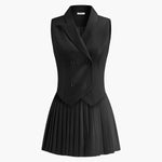 Pileli Mini Etek Takımlı Takım Elbise Yeleklik
